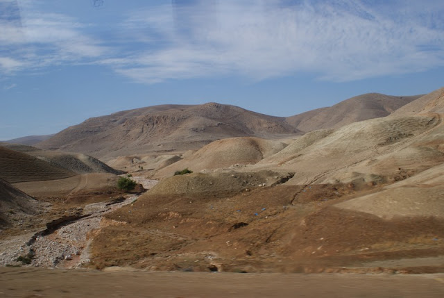 Jedziemy dalej doliną Jordanu z powrotem w kierunku południowym do Judei. I znów szokująca zmiana krajobrazów. Droga wiedzie przez Pustynię Judzką. To przedziwna kraina, bardzo kontrastująca z tym co widzieliśmy bliżej wybrzeża morskiego. Pofałdowany teren pokryty piaskiem i skałami, od czasu do czasu przecięty rozpadliną, którą wyrzeźbił wyschnięty teraz strumień, a to, co najbardziej szokuje, to małe osiedla ludzkie, które wydaje się, że nie mają prawa istnieć w tym niegościnnym otoczeniu, i towarzyszące im, wydarte pustyni, skrawki ziemi przeznaczone pod uprawę dające tym ludziom utrzymanie. Naszym celem jest Jerycho – podobno najstarsze miasto świata. Jerycho to oaza na pustyni. Tu jest woda, a woda tutaj to życie. Autobus zatrzymuje się przed sklepem. Zakupy to też nieodzowna część pielgrzymki. Jesteśmy turystami, a oni z turystów żyją, dzięki nam mają utrzymanie. Oczywiście trzeba się targować, należy to do „dobrego tonu”. W Jerychu zobaczyć można sykomorę, ponad 2000-letnie drzewo, na które, wg tradycji, wspiął się Zacheusz, aby zobaczyć Chrystusa, oraz Górę Kuszenia.